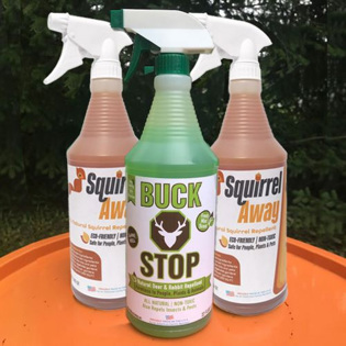 As we began using Buck Stop, we also realized that the squirrels and chipmunks in our yard were becoming a problem as well. They were constantly digging up our garden and potted plants to squirrel away their nuts. Again, we researched to find the best natural, non-toxic solution and developed a recipe that worked. Thus, our second product was created: Squirrel Away.