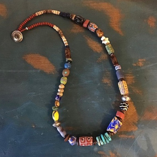 Earthen Rare Jewelry has an earthy, natural, rustic flavor, making a very organic statement. Comprised of an array of natural media including, but not limited to, leather, wood, clay, bone, hemp, silk, minerals, metals, and antique Trade Beads. I describe my jewelry as "Hippie-Gypsy" with a splash of the American Southwest. My fascination with Trade Beads' beauty and history has led to my collecting these truly ancient treasures. The oldest beads in my collection are "Roman Glass Beads," Circa 200 BC. I incorporate them into my designs as well as a hand-sculpted clay bead, inset with Turquoise, the signature to every item I create.